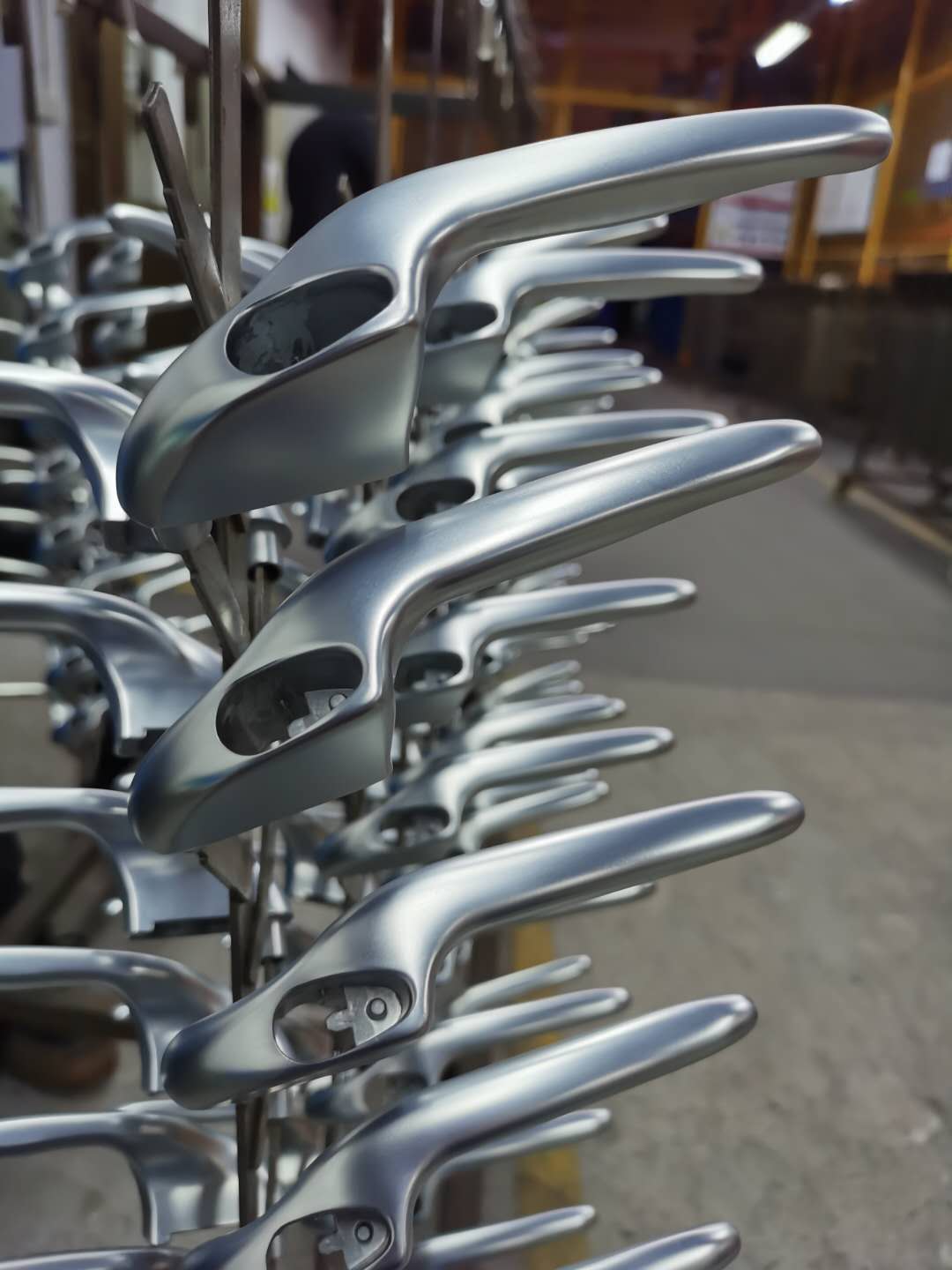 納米消光劑606,電泳漆CNM-160加納米消光劑606做金屬手把,做出金屬珍珠鎳感覺,表面有顆粒感,保留有金屬光澤